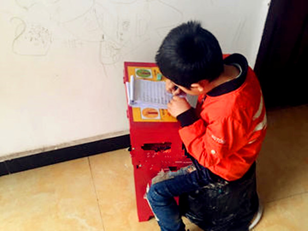 据孩子的奶奶介绍:男孩平时成绩名列前茅,特别爱学习。从小就是自己一手带大,放学后家中无人照看,正好工作的同时能够照料到他,自己心满意足,所以孩子才把作业带到自己上班的地方来做。