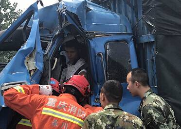目击者称,事发路段随后发生交通拥堵,“消防车、交通执法和120都来了,那个货车司机出不来了,好像腿部还受了伤,消防官兵用电锯把车门锯开后才把司机救出来的。”整个救援过程大概花费了20分钟左右。