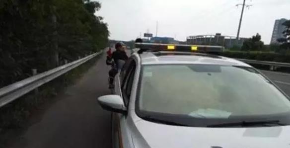 6月2日早上,高速执法队员在绕城高速内线双福北立交附近巡逻时,发现一辆摩托车载着两个人在绕城高速公路上飞快的骑行,执法队员立刻跟上前去,一边指挥摩托车靠边,一边向后方飞速行驶的大货车示警,所幸的是摩托车驾驶员听从指挥及时靠边停车,并未发生危险。