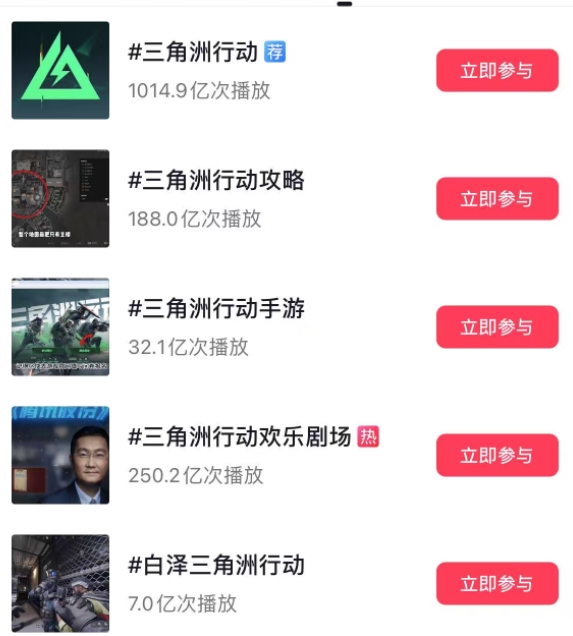 如果把平台范围拓展至抖音、B站,还能发现更多证据。三角洲已成为抖音游戏热度榜第一,单话题播放次数超过千亿,和情感、美食等生活类话题持平,还衍生出了数百亿播放的小剧场版块,不少不玩游戏的乐子人也会来这儿消遣。
